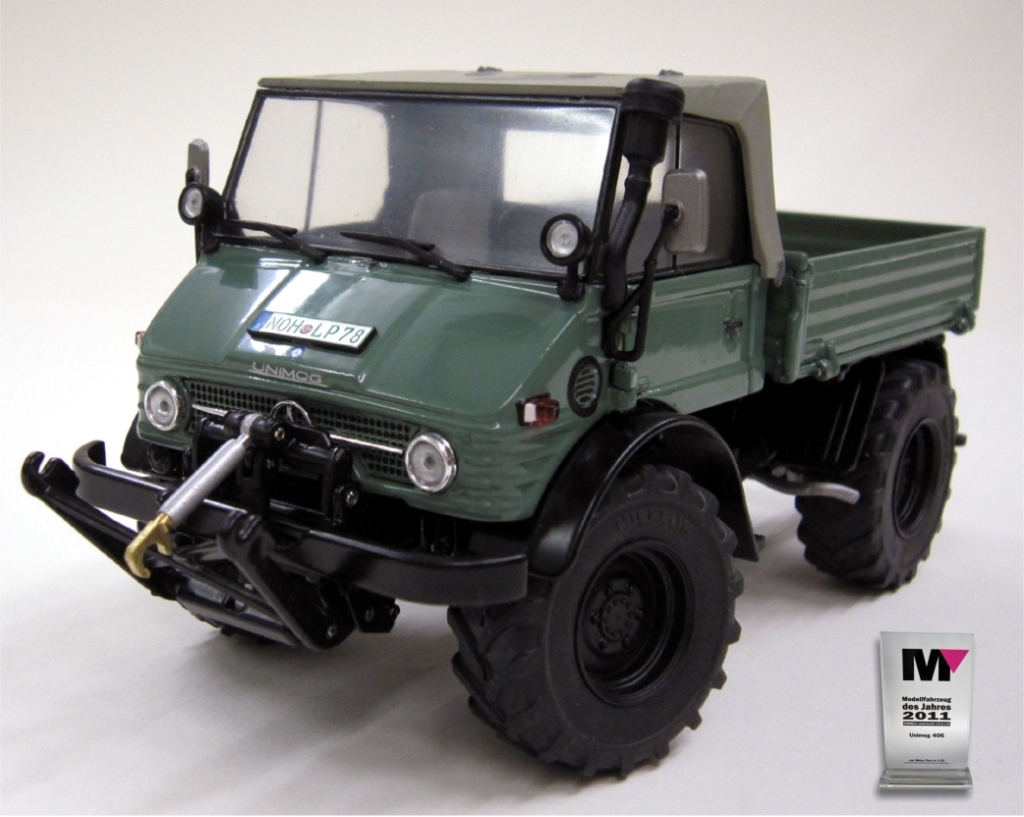 We zijn verheugd met de waardering van de lezers van het tijdschrift “MODELL FAHRZEUG”, die onze Unimog 406 Cabrio tot het beste model van 2011 in de categorie “Verzamelen: Landbouw 1:32 en 1:43” hebben uitgeroepen.